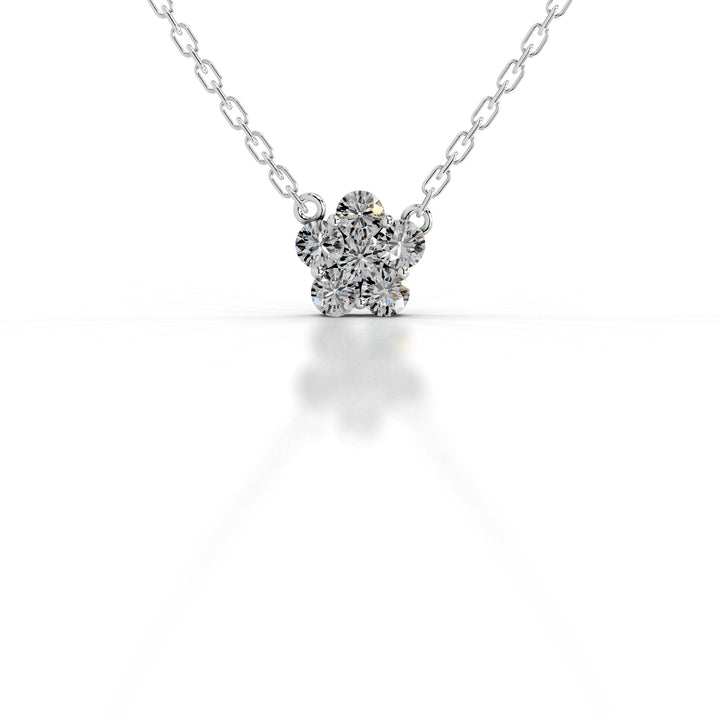 Our Flower Diamond Pendant, where timeless elegance meets nature's beauty. Crafted with meticulous attention to detail, this captivating piece features six brilliant round diamonds meticulously arranged to form the delicate diamonds of a magnificent flower. his pendant is a symbol of eternal love and the enduring beauty of nature.