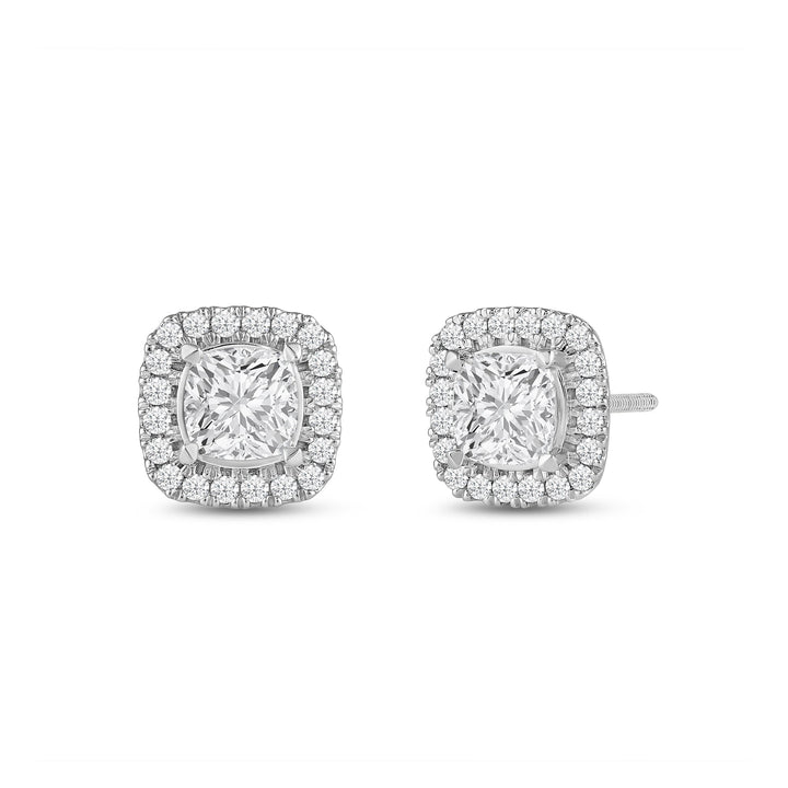 Cushion Cut Halo Moissanite Diamond Stud Earrings for Her