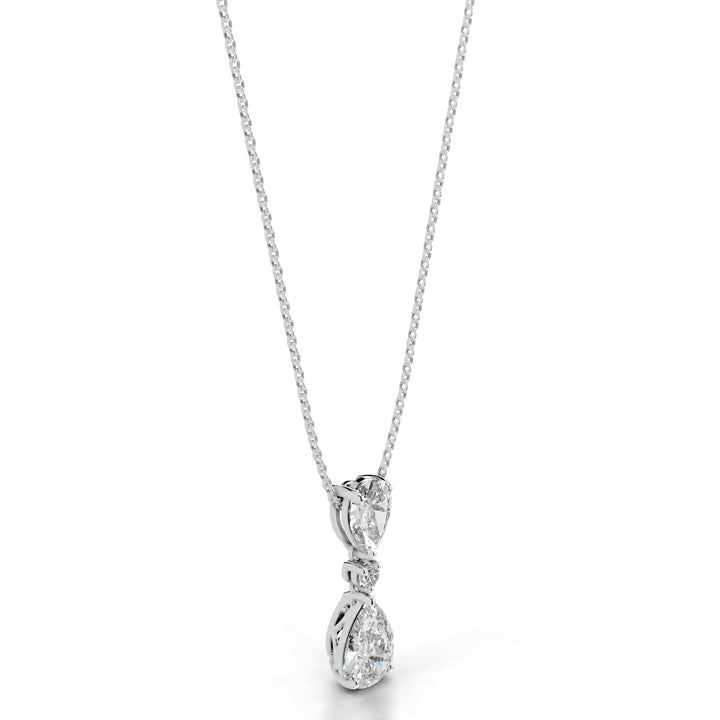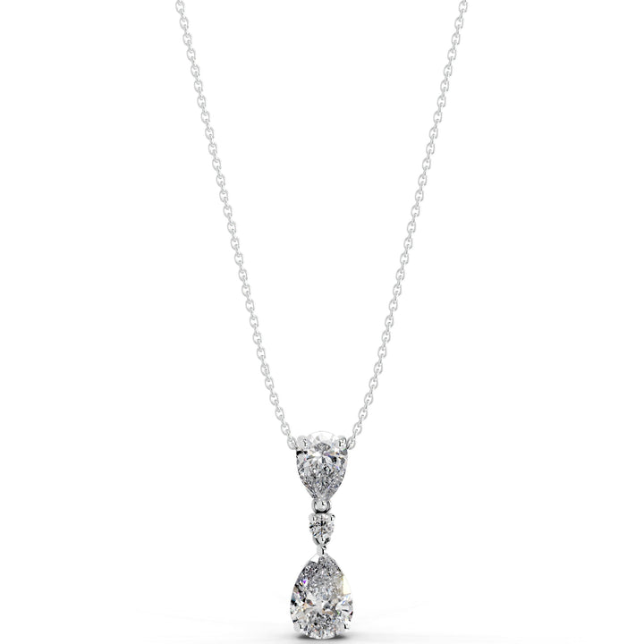 Elevate your style with our exquisite drop pendant. this stunning piece features three pear-shaped diamonds in varying sizes, meticulously arranged to create a captivating and sophisticated design. this pendant effortlessly adds a touch of luxury to any ensemble, making it the perfect accessory for both formal occasions and everyday glamour.