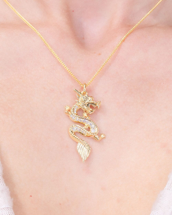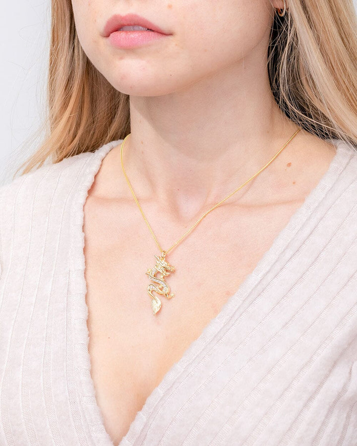 Our exclusive Diamond Year of the Dragon Pendant. This exquisite piece captures the essence of one of the most dynamic symbols in the Chinese zodiac, representing strength, good fortune, and prosperity. Expertly crafted from premium solid 18k yellow gold, this pendant showcases intricate detailing that brings the legendary dragon to life, making it a vibrant emblem of fortune and authority.