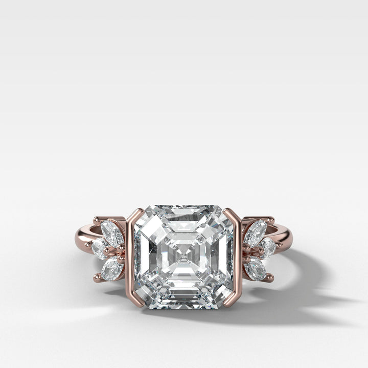 Double Lotus Half Bezel Engagement Ring With Asscher Cut Diamond