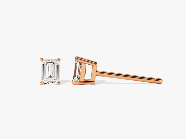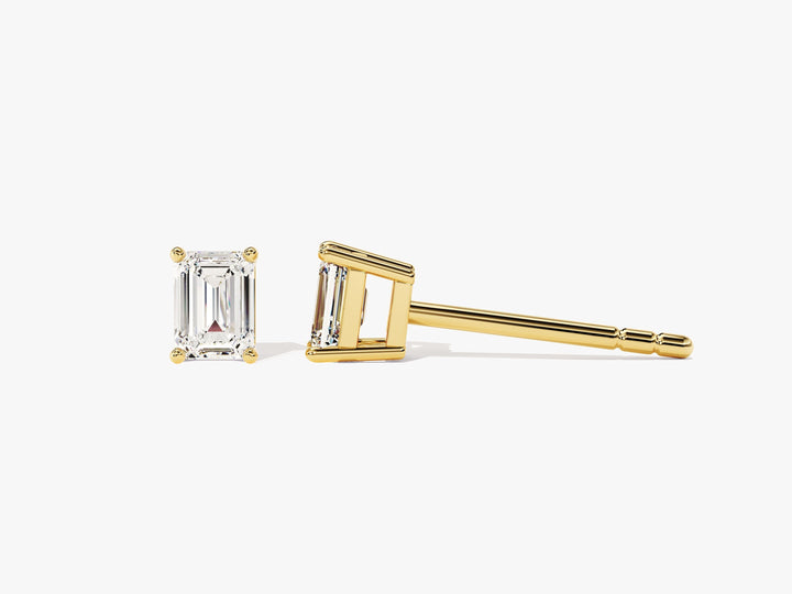 Emerald Cut Moissanite Diamond Stud Earrings for Women in Yellow Gold