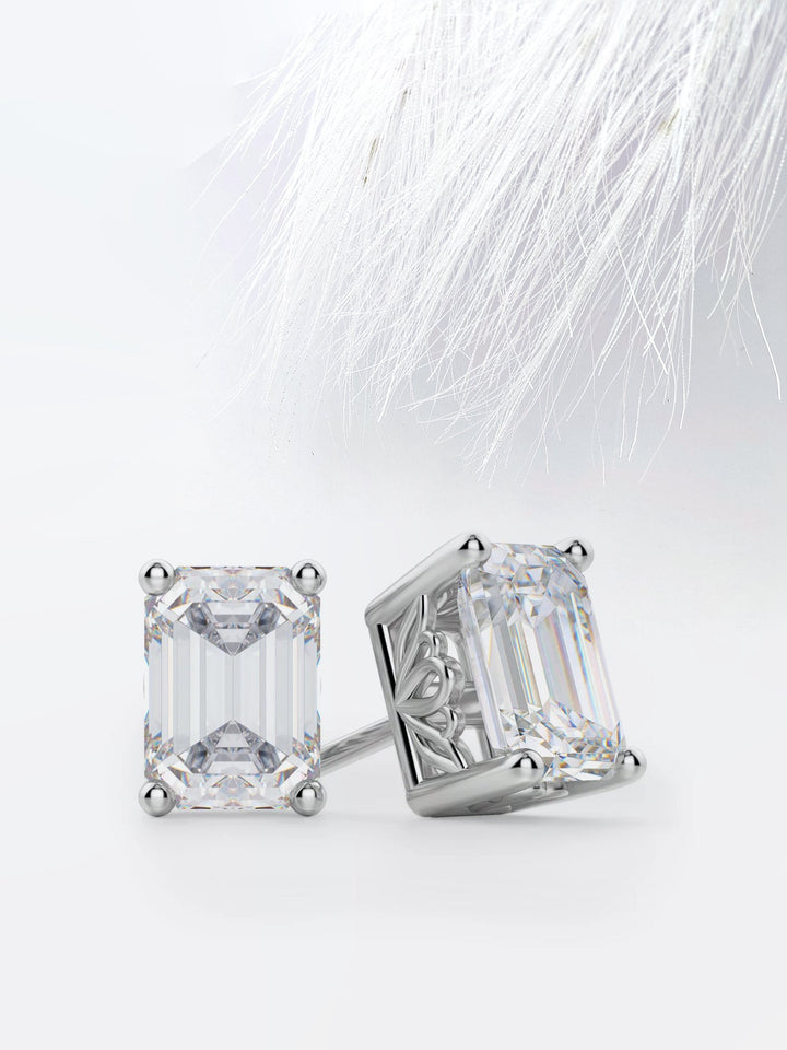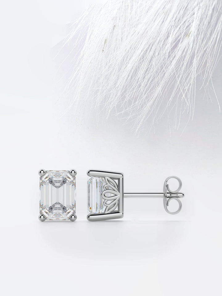 Emerald Cut Moissanite Diamond Studs Earrings for Women
