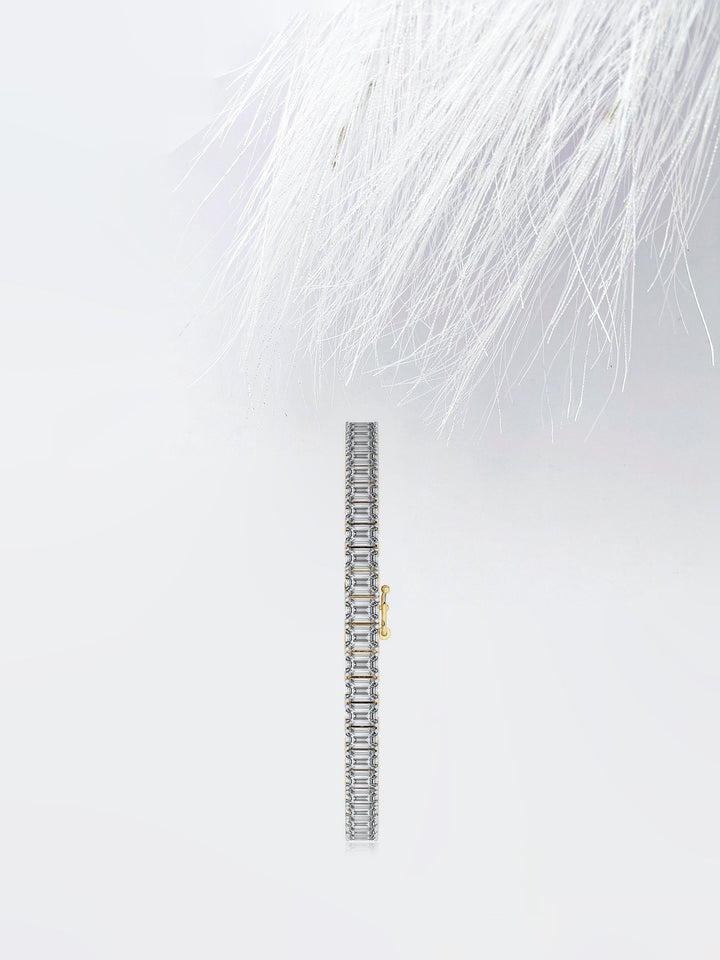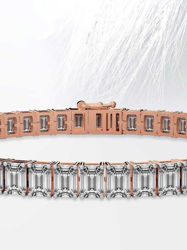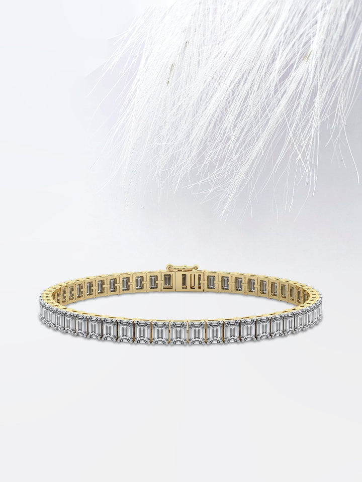 Introducing our emerald-cut moissanite diamond tennis bracelet, meticulously crafted in solid 14K or 18K white gold. Available in yellow, rose, or classic white gold tones and customizable lengths from 5 to 8 inches, each emerald-cut moissanite diamond is expertly set to showcase its exceptional clarity and brilliance. This bracelet effortlessly blends timeless elegance with contemporary charm, perfect for elevating any ensemble from day to evening. Embrace luxury and sophistication with this exquisite piece, designed to be a standout in your jewelry collection with its enduring beauty and captivating sparkle.