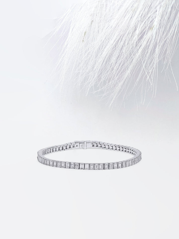 Emerald Cut Moissanite Diamond Tennis Bracelet in White Gold
