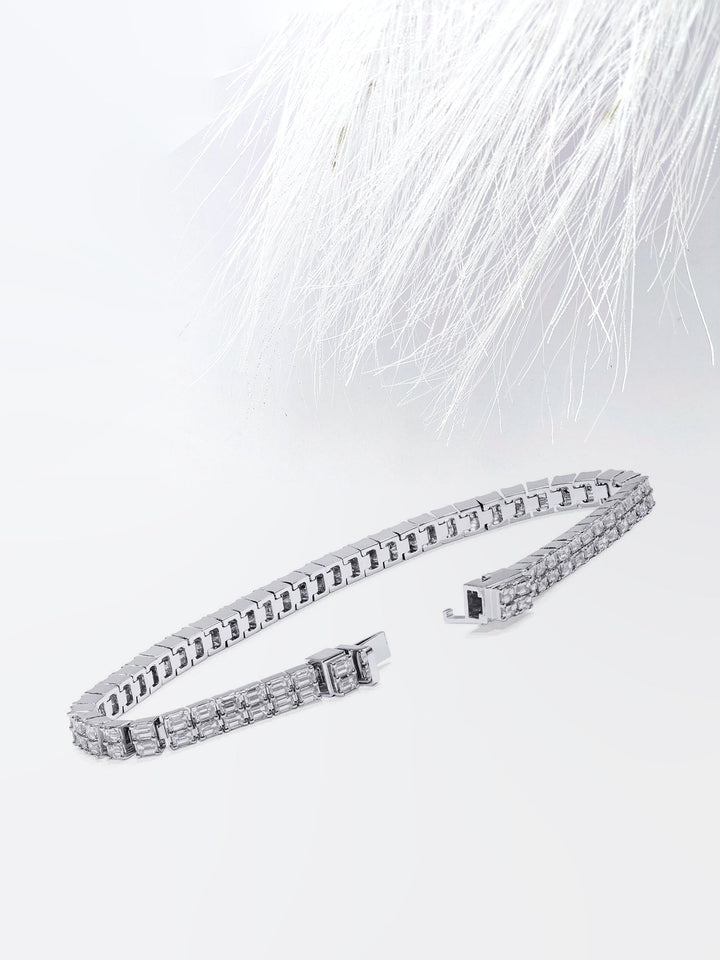 Emerald Cut Moissanite Diamond Two Row Tennis Bracelet in White Gold