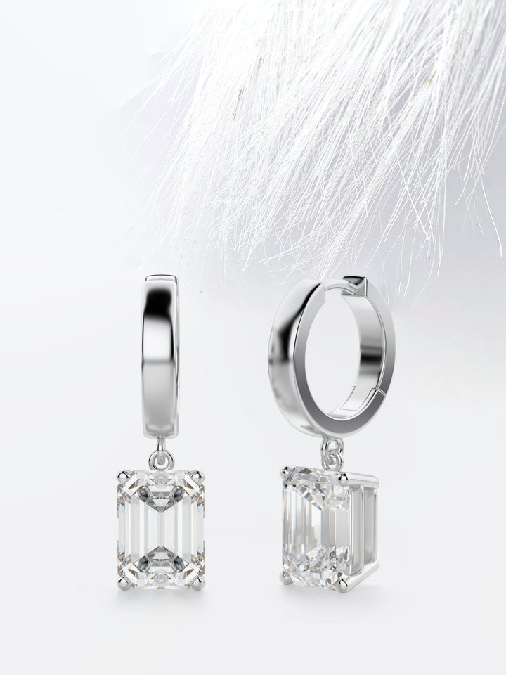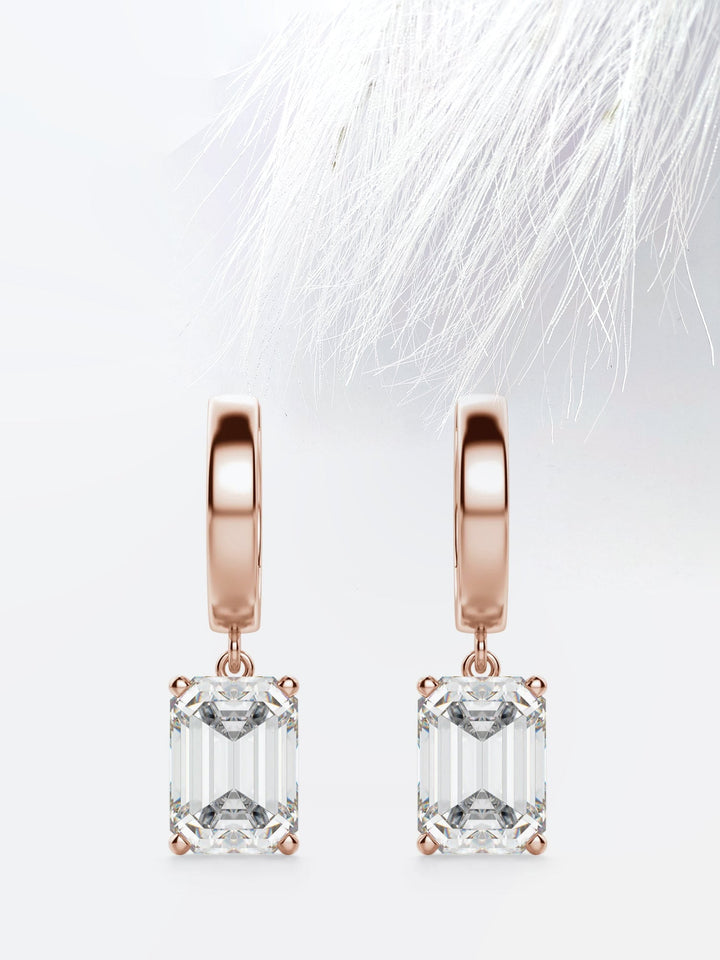 Emerald Cut Moissanite Drop Diamond Earrings in 18K Gold