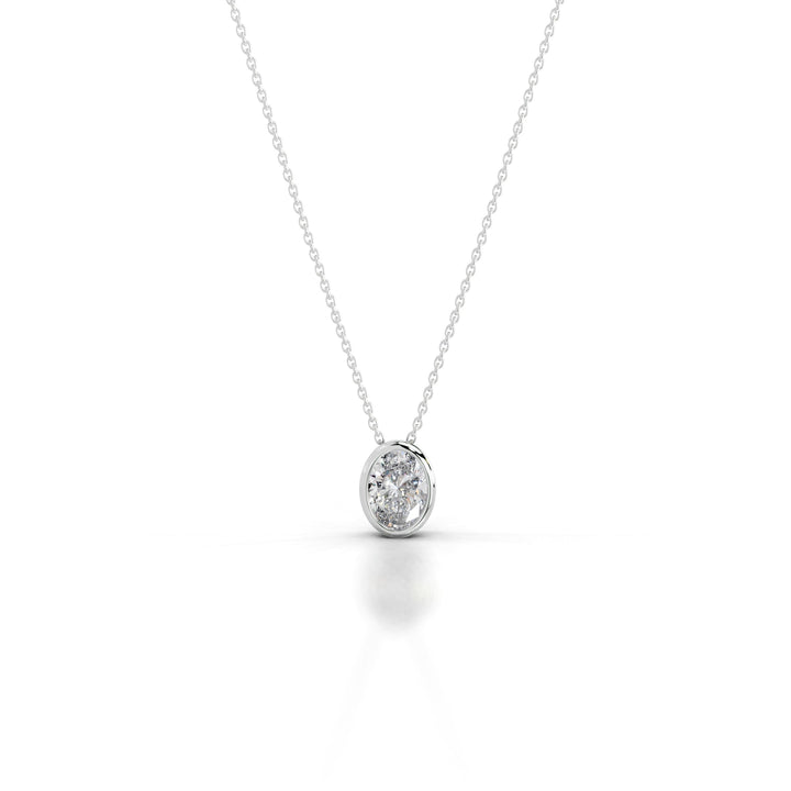 Indulge in timeless elegance with our exquisite Oval-shaped diamond solitaire pendant, Meticulously crafted and set with a distinctive bezel setting, this pendant elevates the allure of the classic solitaire with a touch of modern allure. The pear-shaped diamond, renowned for its captivating brilliance and delicate silhouette, is meticulously selected to ensure unparalleled quality and brilliance.