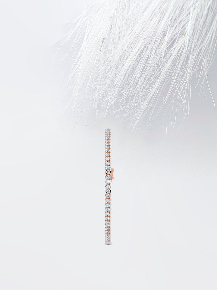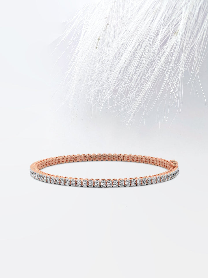 Experience sophistication with our half-bezel round moissanite diamond tennis bracelet, meticulously crafted in solid 14K or 18K white gold. Available in yellow, rose, or classic white gold tones and customizable lengths from 5 to 8 inches, each round-cut moissanite diamond is elegantly half-bezel set to maximize brilliance and sparkle. This bracelet effortlessly combines modern style with timeless elegance, perfect for both formal events and everyday wear. Elevate your jewelry collection with this exquisite piece, designed to enchant with its radiant allure and impeccable craftsmanship.