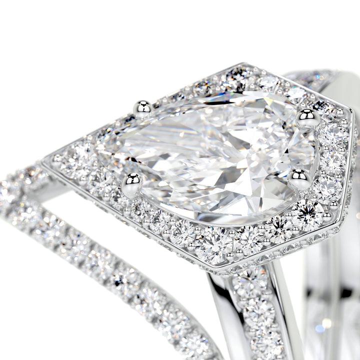 2.5 Carat Designer Diamond Engagement And Wedding Ring Set. A Stunning Pear Diamond - 1.5 Carat E VS2 (- 100% Eye Clean with lots of sparkles) set in a Designer Style Ring along with 0.50 Carat Round Diamonds on the sides, Including a matching wedding band with 0.50 Carat Diamonds.