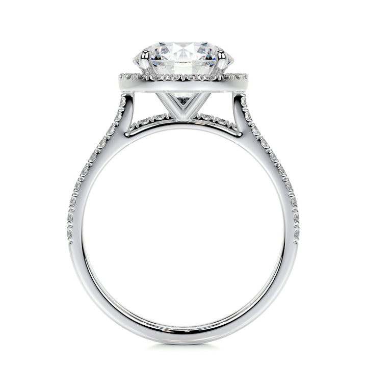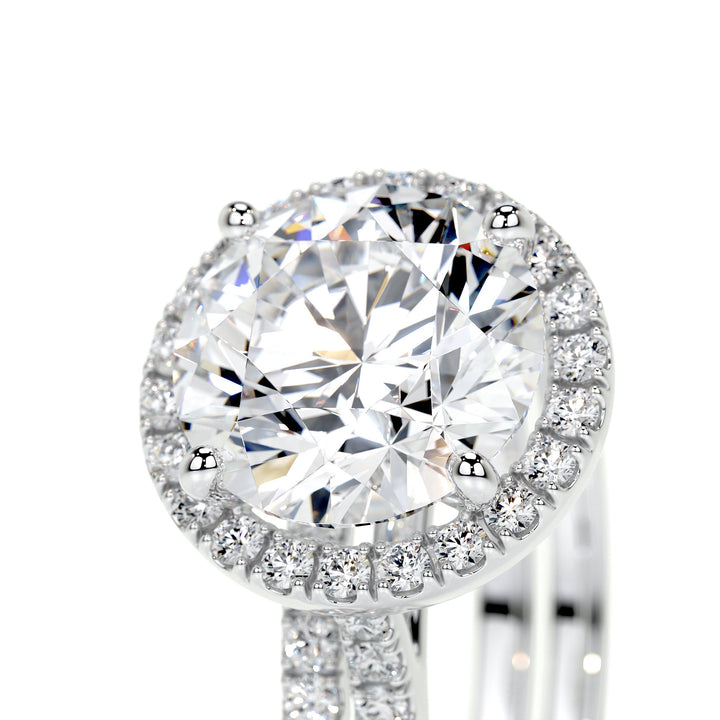 The celebrity-sized 3-ctw classic halo-styled diamond engagement ring is made for a star--your gorgeous bride. The side diamonds on the band are the perfect finish for the pristine center stone. Watch out for the paparazzi with this ring! 2 Carat Main D-VS1 main diamond set with 0.5 Carat Diamonds on the sides, including 0.3 Carat Matching Wedding Band, giving a total of 2.8-carat Bridal Set.