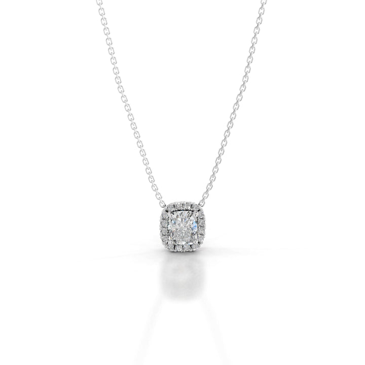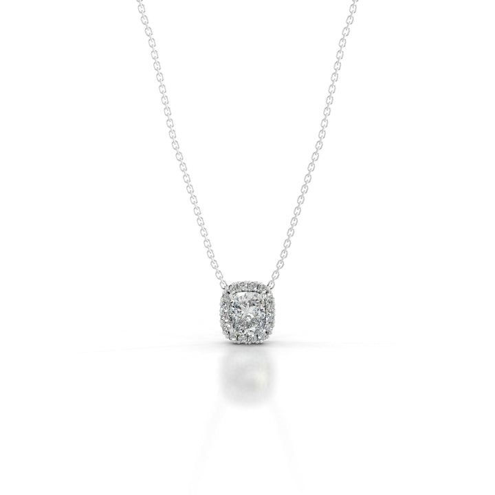 Elevate your elegance with our exquisite Cushion diamond pendant, a timeless treasure that captures the essence of grace. Crafted with precision and adorned with a radiant halo of Round diamonds, this stunning piece from our collection embodies the epitome of luxury and refinement.