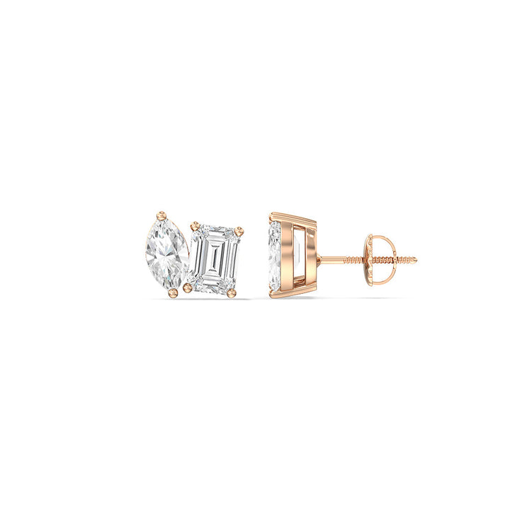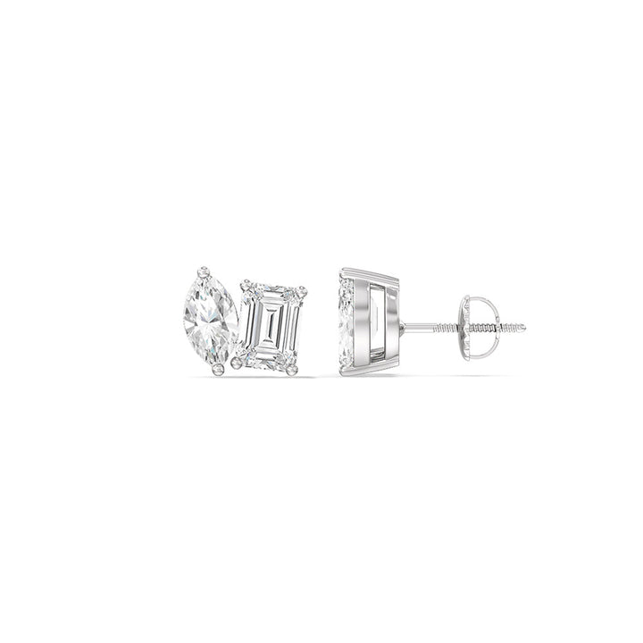 Marquise & Emerald Moissanite Two Stone Diamond Stud Earrings