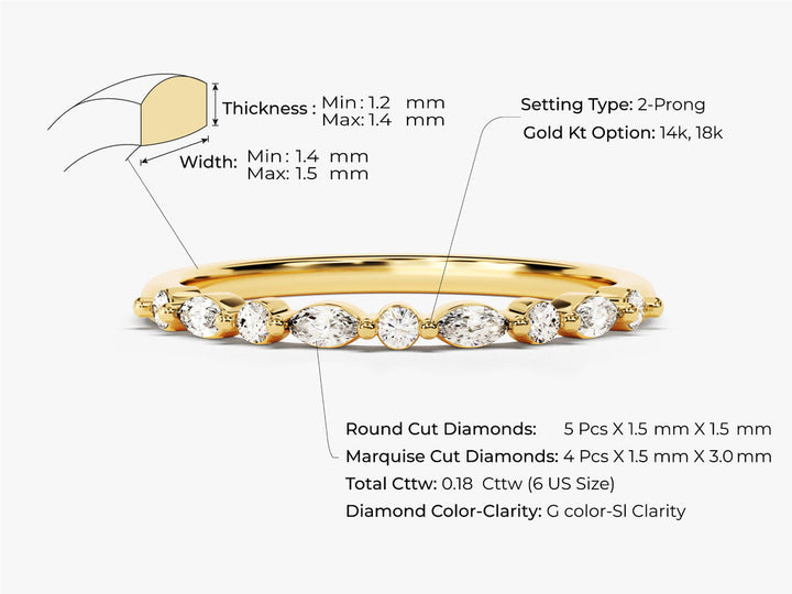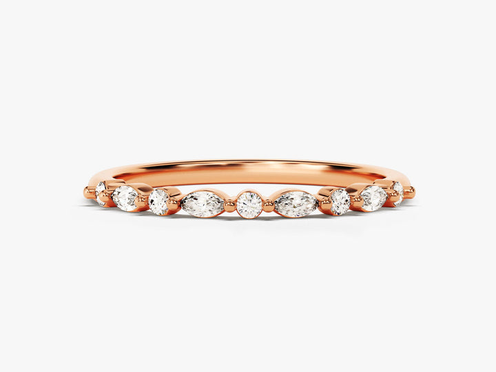 Marquise & Round Cut Half Eternity CVD EF/VVS Diamond Wedding Band