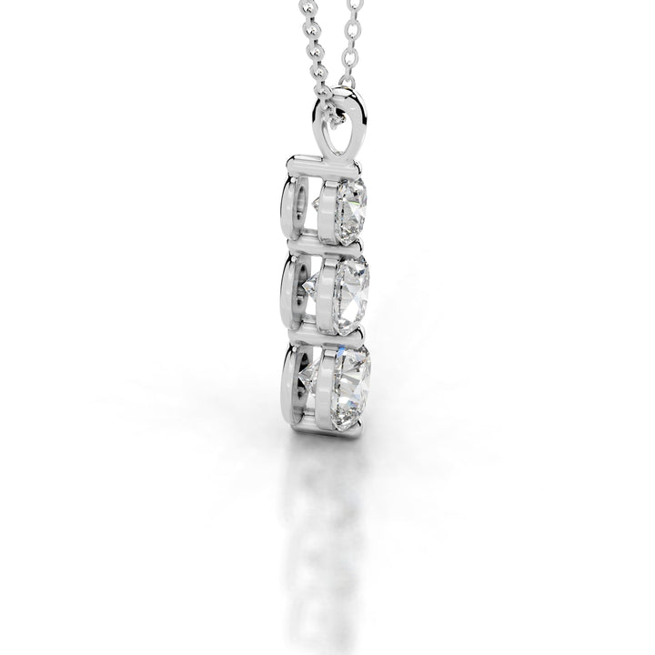 This stunning adornment features a cascade of three brilliant round diamonds, each meticulously chosen for its exceptional clarity and mesmerizing sparkle. Set against a backdrop of lustrous metal, the diamonds delicately dance along the neckline, infusing every movement with unparalleled grace and sophistication.