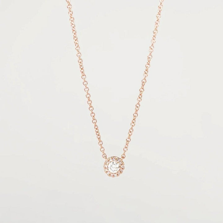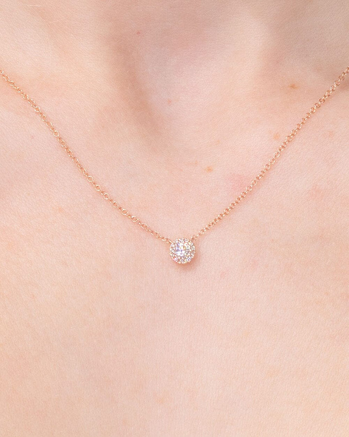 Mini Diamond Halo Necklace Rose Gold