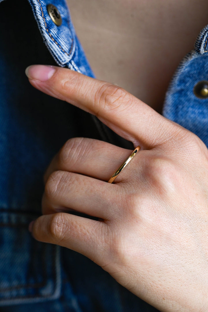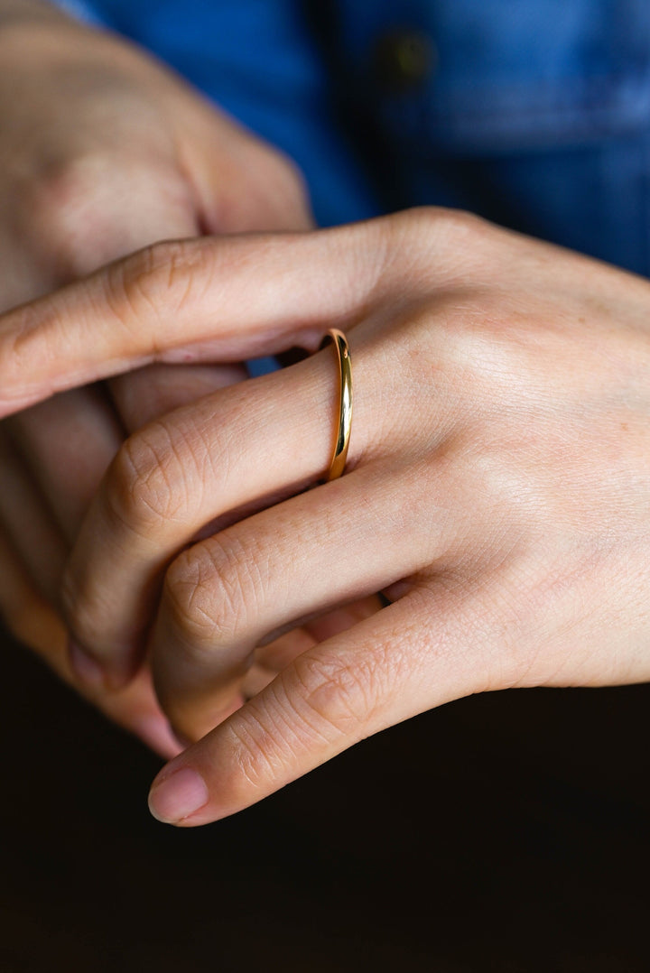 ✥ The Minimalist Simple Shine Wedding Band for her, crafted from 14k solid gold, is designed with simplicity and elegance in mind. Featuring a 2.1mm width, this band strikes the perfect balance between subtlety and presence, making it ideal for everyday wear or special moments. Available in 10K, 14K, or 18K gold, it comes in yellow, white, or rose gold tones, offering versatility to suit any style. This timeless band is a symbol of enduring love and refined taste, perfect for those who appreciate minimalist beauty.