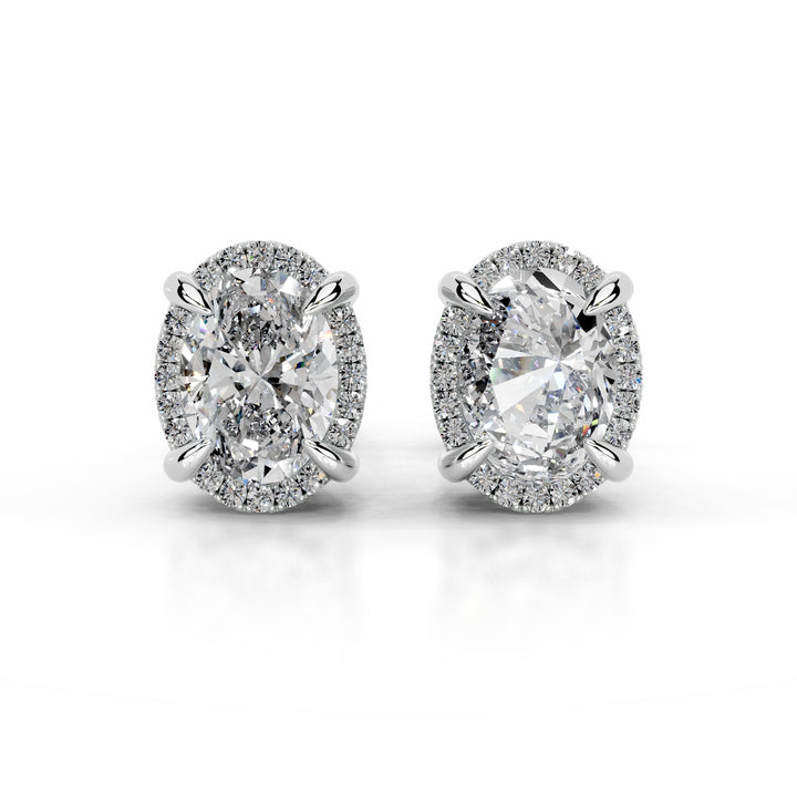 Our exquisite Oval Stud Earrings adorned with a dazzling Round Brilliant Halo. the halo of round brilliant diamonds adds an enchanting sparkle, Perfect for adding a touch of glamour to any ensemble, these earrings are a testament to the enduring beauty.