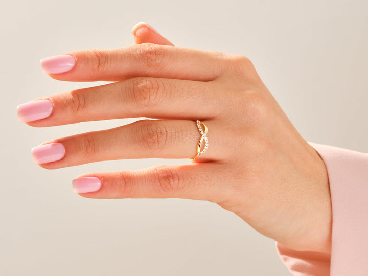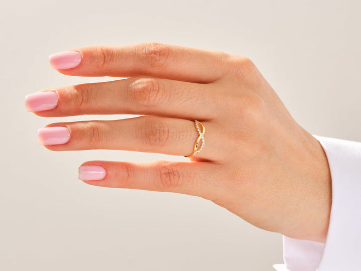 ✥ The Ring Shown in the Picture Holds Beautiful 0.10CT Halfway Set Infinity EF-Color, VVS-Clarity CVD Lab Grown Diamonds.