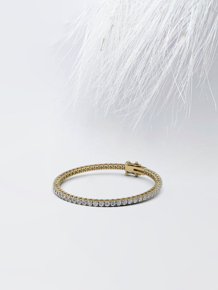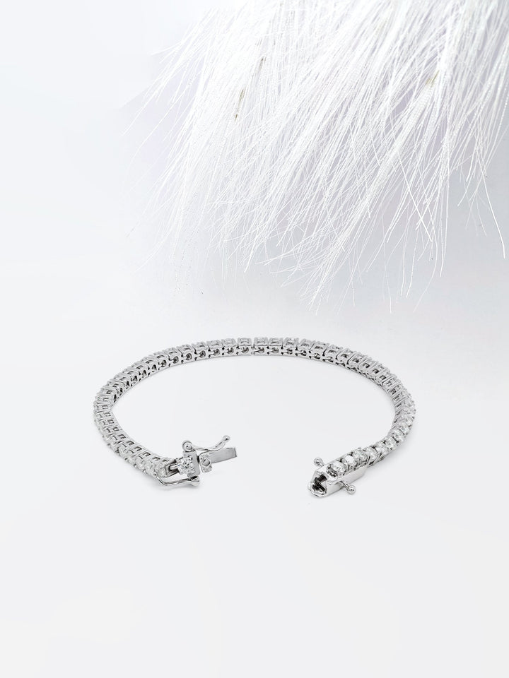 Elevate your ensemble with the timeless beauty of our Round Cut Moissanite Diamond Tennis Bracelet for Women. This stunning bracelet features a dazzling row of round-cut moissanite diamonds, each meticulously set in lustrous white gold for a look of pure elegance. Available in lengths from 5 inches to 8 inches, this bracelet is designed to fit comfortably and securely, ensuring a perfect fit for every wrist. Whether worn alone for a touch of glamour or stacked with other bracelets for a more dramatic look, this Round Cut Moissanite Diamond Tennis Bracelet is sure to make a statement. Treat yourself or a loved one to the luxury and sophistication of this exquisite diamond bracelet, perfect for any occasion.