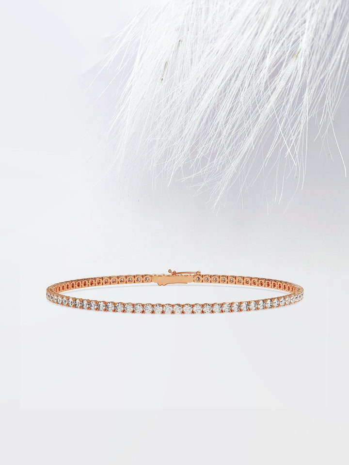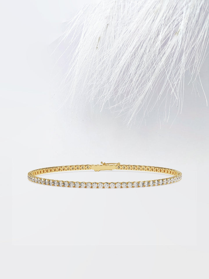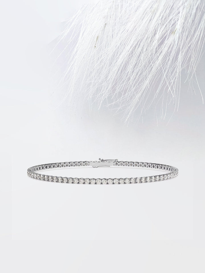 Indulge in luxury with our round-cut moissanite diamond tennis bracelet, meticulously crafted in 14K white gold. Each brilliant moissanite diamond is prong-set to maximize sparkle and brilliance, creating a dazzling display that captures attention from every angle. Whether worn solo or stacked with other bracelets, its timeless design exudes elegance and sophistication, making it an ideal accessory for both formal occasions and everyday glamour. Elevate your jewelry collection with this exquisite bracelet, designed to complement any attire with its radiant allure and enduring beauty.