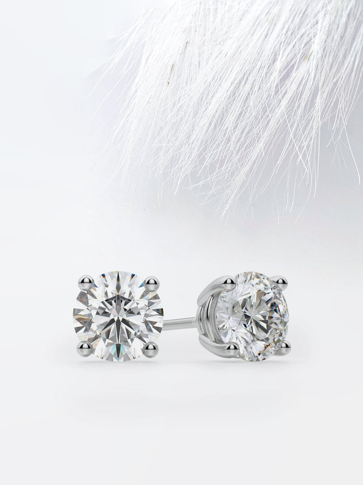 Round Cut Moissanite Stud Diamond Earrings for Women