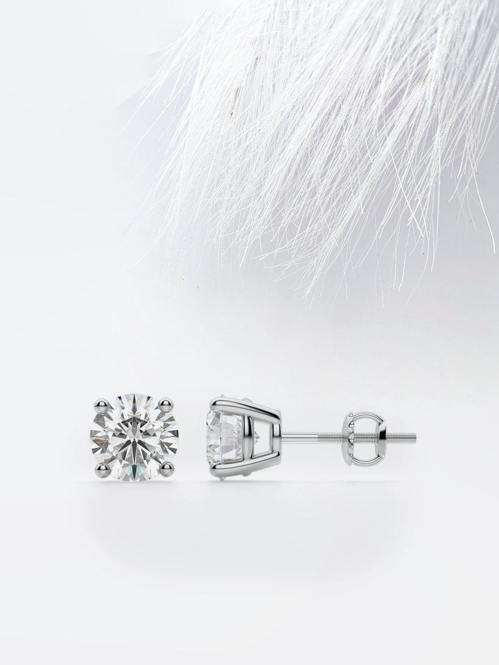 Round Cut Moissanite Stud Diamond Earrings for Women