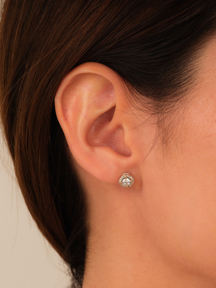 Round Halo Moissanite Diamond Stud Earrings for Her