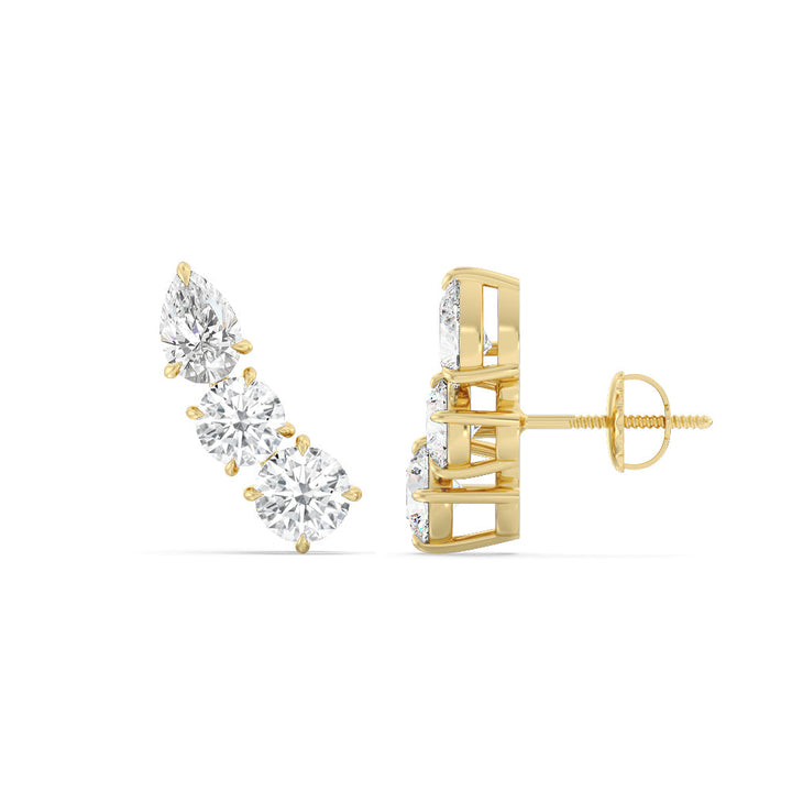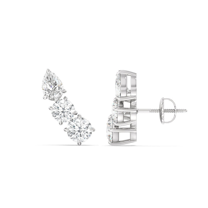 Round & Pear Cut Moissanite Three Stone Diamond Earrings for Her