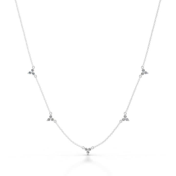Indulge in the timeless allure of our exquisite round diamond chain necklace, a symbol of sophistication and elegance. Crafted with meticulous attention to detail, each pendant is adorned with three dazzling round diamonds strategically set to create a mesmerizing illusion of larger stones.