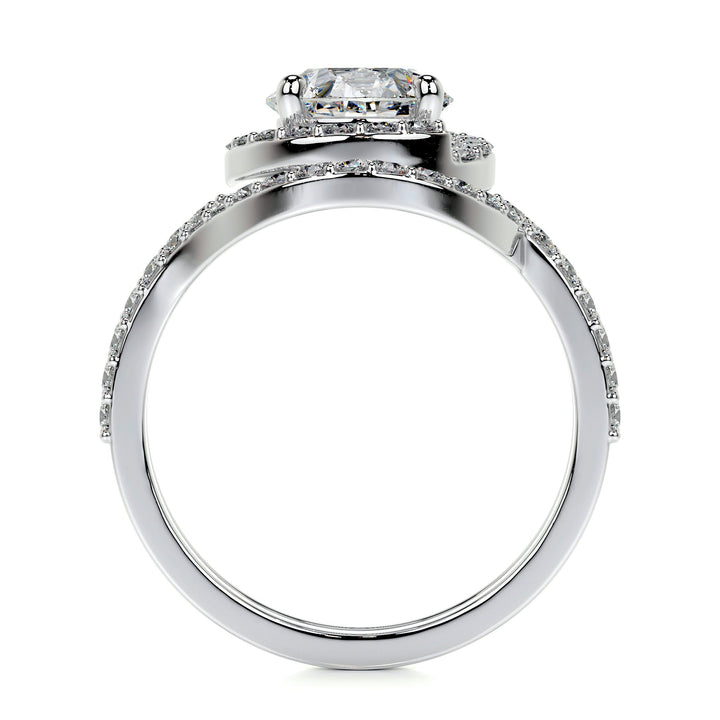 She's got style on her own.Now she wears it gracefully on her lovely hand.Our 2-ctw oval, E VS1 is a stunning halo mounted on a diamond-accented shank.That's a lot of personality in a ring, and it suits her perfectly.A 1.5 Carat Center Stone - E VS1 diamond is mounted along with 0.25-carat side stones.Including 0.25 Carat a Matching Wedding Band.