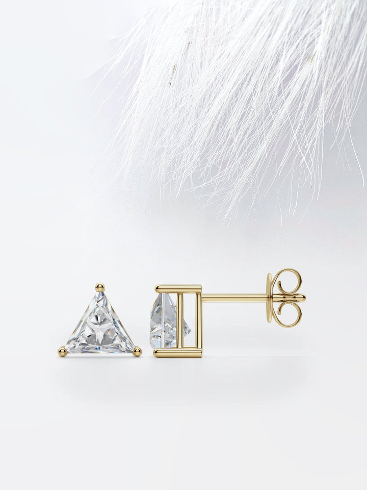 ✥ Add a geometric flair to your jewelry collection with these Triangle Cut Moissanite Diamond Stud Earrings in 10K White Gold. The unique triangle cut of the moissanite diamonds gives these studs a modern and stylish look, perfect for adding a touch of sophistication to any outfit. The diamonds are set in lustrous 10K white gold, creating a stunning contrast that enhances the brilliance of the stones. These earrings are versatile enough to be worn every day or to add a touch of glamour to a special occasion. Whether you're treating yourself or looking for a thoughtful gift, these Triangle Cut Moissanite Diamond Stud Earrings are sure to be a hit.