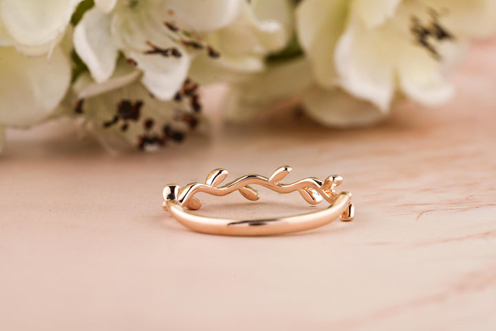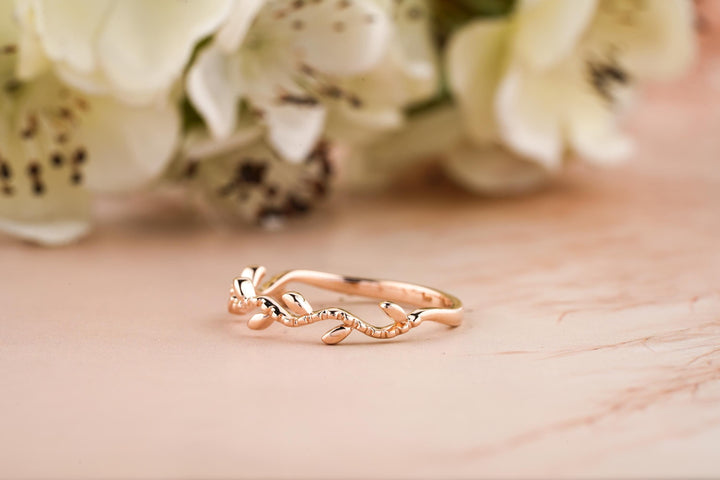 Twig Rose Gold Wedding Band, Tree Branch Rings For Women